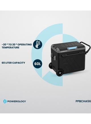 ثلاجة باورولوجي المحمولة بسعة 60 لتر مع حجرة مزدوجة وعربة هي حل تبريد متعدد الاستخدامات وموثوق به مصمم للاستخدام الداخلي والخارجي. تتميز هذه الثلاجة بتبريد ثنائي المنطقة، مما يسمح لك بضبط درجات الحرارة بشكل منفصل في كل حجرة، مما يجعلها مثالية لتخزين مجموعة متنوعة من العناصر، من المشروبات إلى المنتجات الطازجة. تستخدم الثلاجة ضاغطًا عالي الكفاءة، والذي يبرد بسرعة وبشكل ثابت مع الحفاظ على نطاق واسع من درجات الحرارة من -20 درجة مئوية إلى +20 درجة مئوية. يضمن التحكم في درجة الحرارة هذا بقاء العناصر الخاصة بك في درجة الحرارة المثالية، سواء كنت تستخدمها كثلاجة أو فريزر.