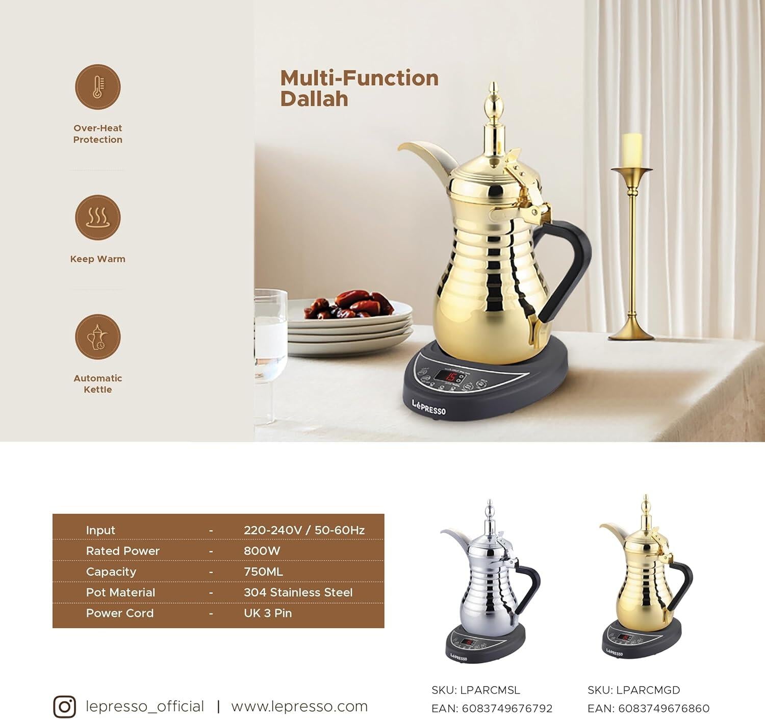 دلة LePresso الكهربائية لتحضير القهوة العربية / سعة 750 مل / فضي